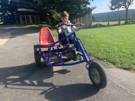 Eine Vielzahl von Fahrzeugen, angefangen vom Bobbycar bis hin zu Go-Carts, Laufrädern und Kinderrädern in verschiedenen Größen sowie Traktoren, sorgen für Spiel und Spaß.
